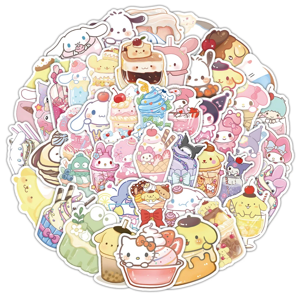 10/30/53pcs Cute Sanrio Food Cartoon Stickers Kuromi Melody Decals Kids Toy Fridge Notebook Luggage Phone Graffiti Sticker Decor