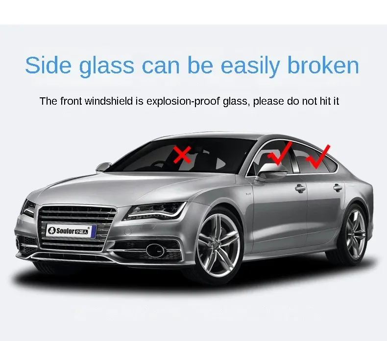 Tempered glass window breaker: the solid, heavy-duty, stainless-steel spike easily breaks tempered glass car side windows. Hit preferably one of the corners of the window for better result.