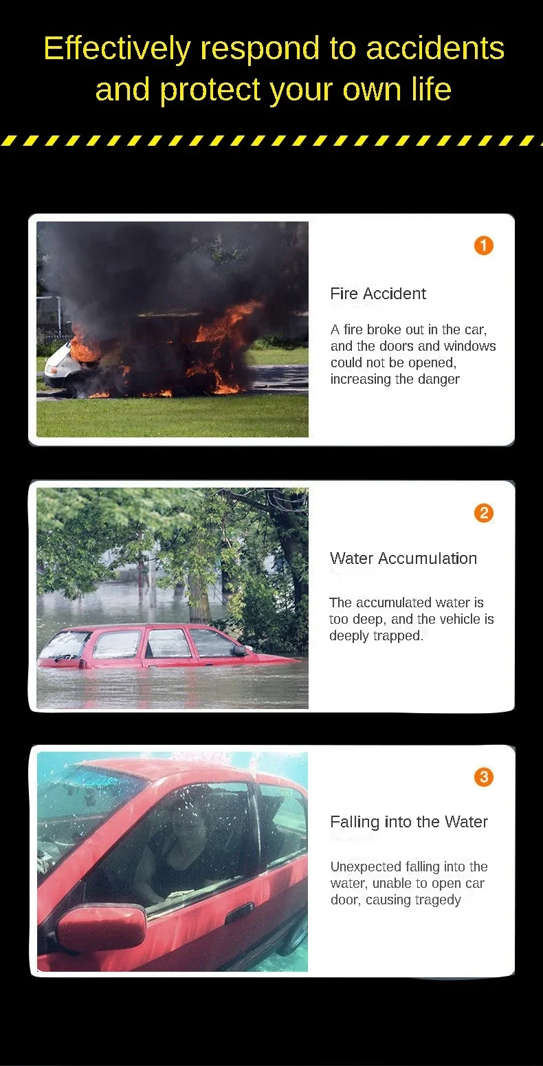 The original 2-in-1 lifesaving compact emergency car safety tool: this emergency keychain hammer provides peace of mind to yourself and your family on the road in case of car entrapment. Can be used in various situations such as rollover, electrical system failure, car fire, floods, sinking car accident.