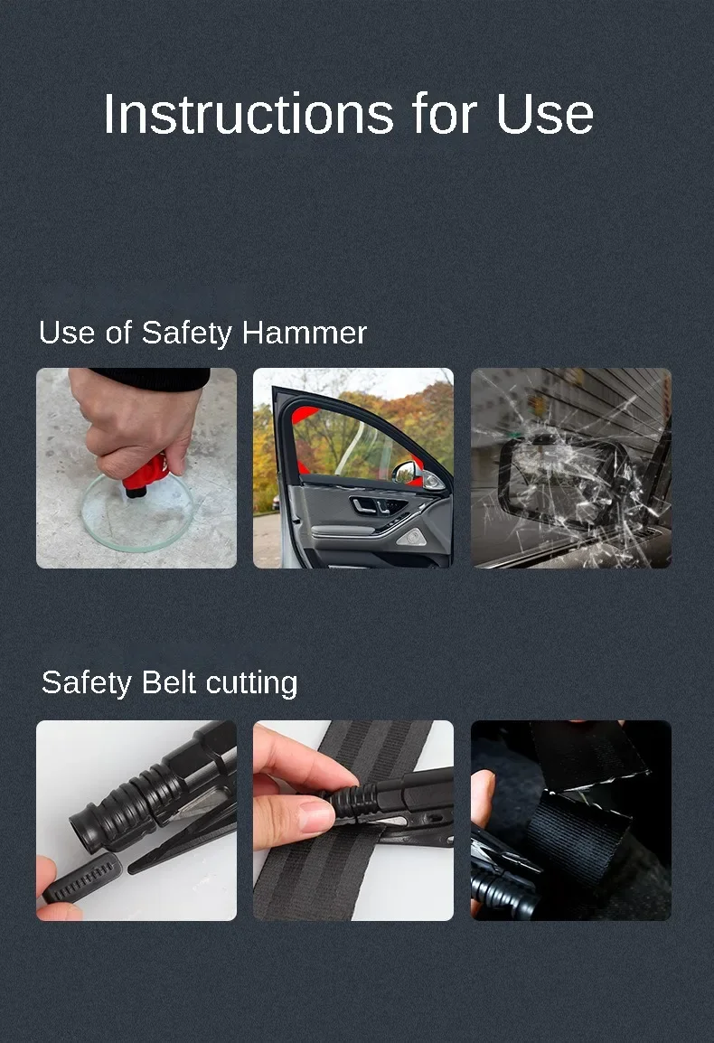 Function: broken window/ partition seat belt/ whistle warning/ help escape